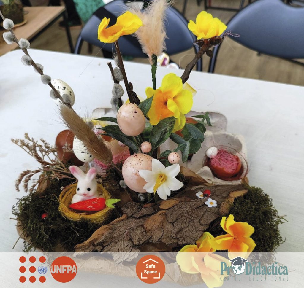 În pragul sărbătorilor pascale, Spațiile Sigure pentru femei și fete din cadrul Școlii Profesionale din Nisporeni și al Centrului Orășenesc al Tinerilor Naturaliști din Chișinău au organizat pentru beneficiarele lor – refugiate din Ucraina și reprezentante ale comunității gazdă – ateliere dedicate datinilor creștine. Acestea și-au propus să valorifice tradițiile Sfintei Sărbători, oferindu-le participantelor oportunitatea de a învăța pașii de bază pentru pregătirea atribuitelor specifice și realizarea de compoziții decorative.